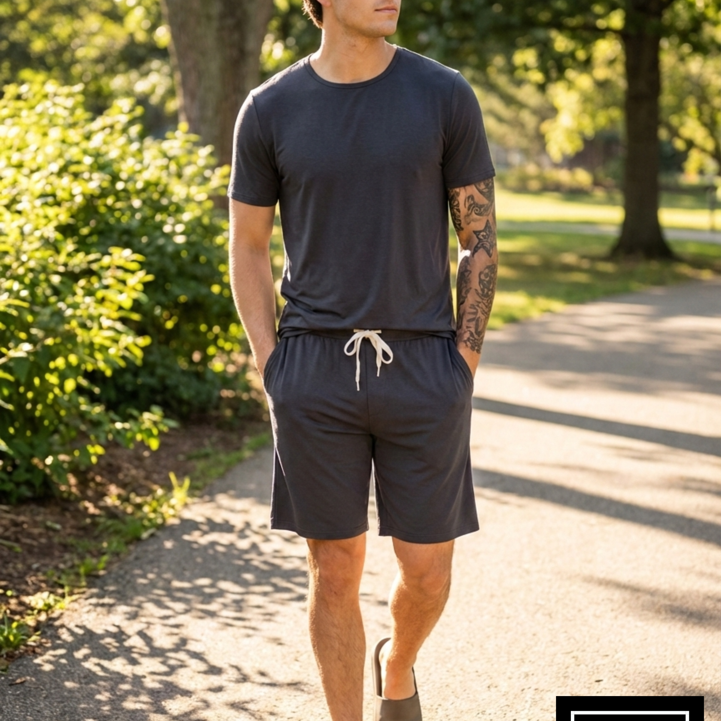 Ideales para parejas: Creemos que las mejores experiencias de descanso se comparten. Estos shorts son unisex y perfectos para regalar . Si bien los hombres los encuentran fieles a su talla habitual, las mujeres pueden lograr fácilmente un look deportivo y chic con una talla menor . Esto los convierte en el conjunto perfecto para parejas. Ya sea para relajarse una mañana de fin de semana o para una escapada tropical, la absorción del sudor y la suavidad de estos shorts de bambú los convertirán en los únicos que querrás usar.