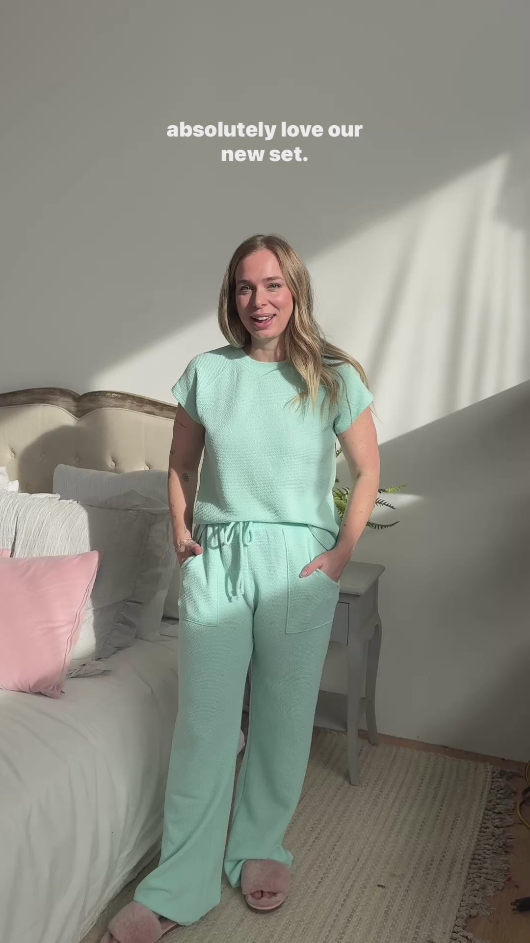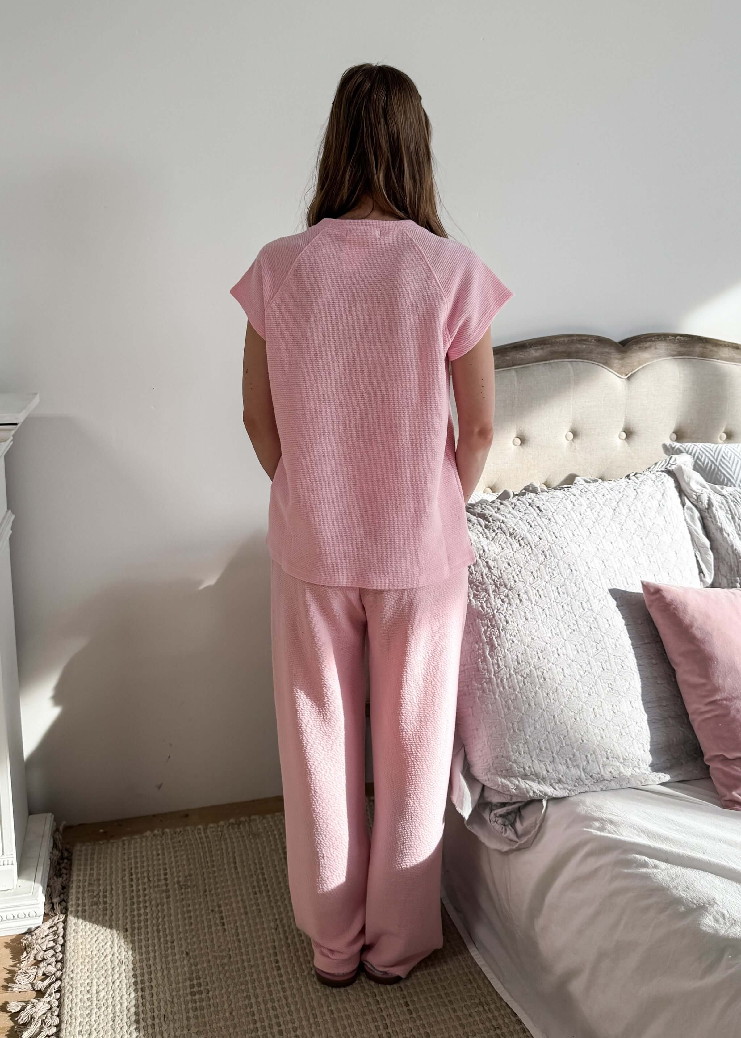 Say yes to comfort and style with our Summer Vibes PJ Tee/Wide Leg Pant Set! Available in both pink and mint, this sweet set is perfect for any occasion - whether you're running errands, dressing up, or just lounging around. With a wide leg pant, cap sleeves, and convenient pockets, this set is the perfect combination of comfort and chic.