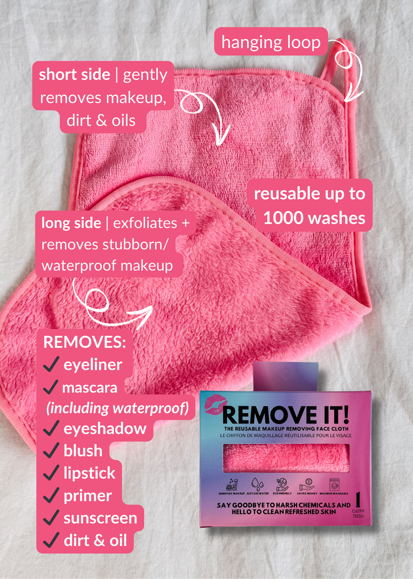 Remove It Makeup Remover Cloth – Pink